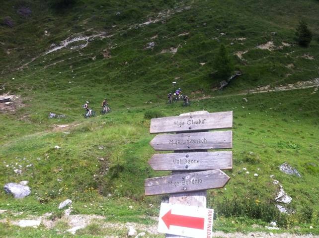 Si prende a destra la bellissima discesa verso la valle Aperta e la Sella di Bondolo, segnavia CAI 258. Attenzione ad un paio di ponticelli franati che debbono essere superati a piedi.